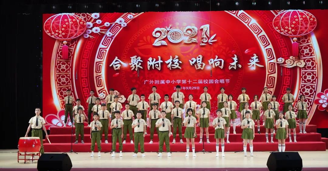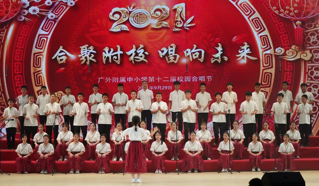 为了喜迎国庆、中秋双节,庆祝建党一百周年,弘扬爱国主义,丰富校园文化生活,陶冶学生高尚情操,推进我校活动育人的特色建设, 2021年9月29日,我校在云山会堂举行了“合”聚附校、“唱”响未来——广外附属中小学第十二届校园合唱节。通过举办合唱节这一传统美育活动,渗透德育教育,在表现美、创造美的过程中,践行爱国主义、团队合作等学生德育建设。