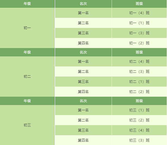 各年级团体总分排名