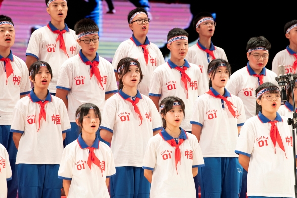 各班级参赛的合唱节目形式丰富,在音乐的基础上加以乐器、舞蹈、书法、情景剧等等的元素,精彩纷呈。一首首动人的歌曲让人心潮澎湃,他们着装整齐,歌声嘹亮,用音乐唱出对祖国的赞美、对美好生活的热爱。