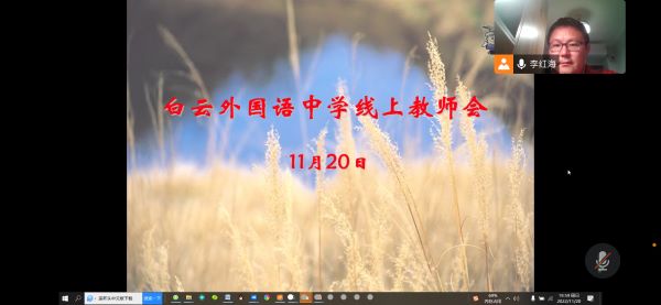 守方寸小屏,倾偌大用心。为了确保线上教学的高效质量及线上综合训练顺利开展,白云外国语中学于11月20日通过腾讯会议平台进行全体教师会。