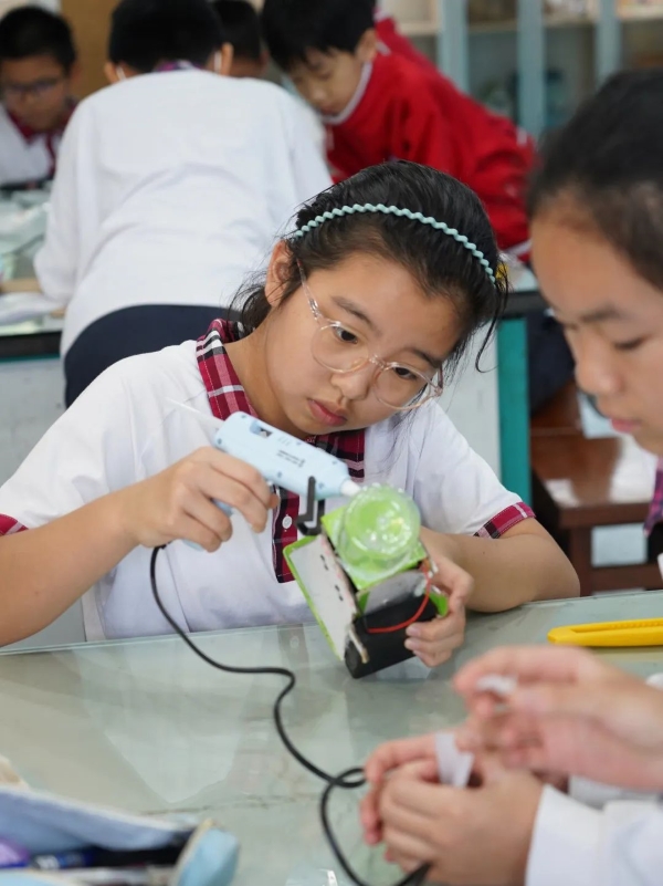 学校自2016年起全面开设创客普及课程,课程引入完整的机械、电子、和编程知识,以Arduino开源硬件为载体,以实践活动、问题解决带动学生学习为过程,强调直观体验与合作探究,突出系统性、跨学科、趣味性、体验性、协助性、艺术性和设计性等特点,旨在培养学生的实践创新素养。