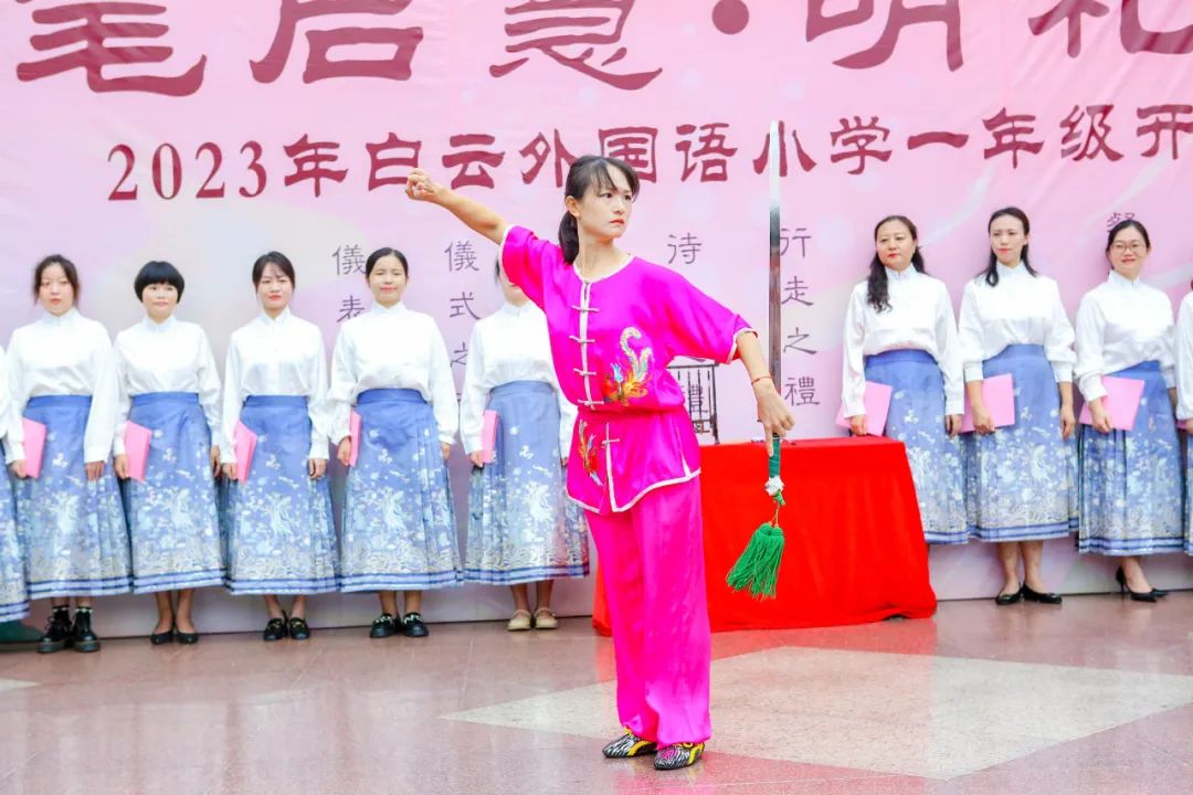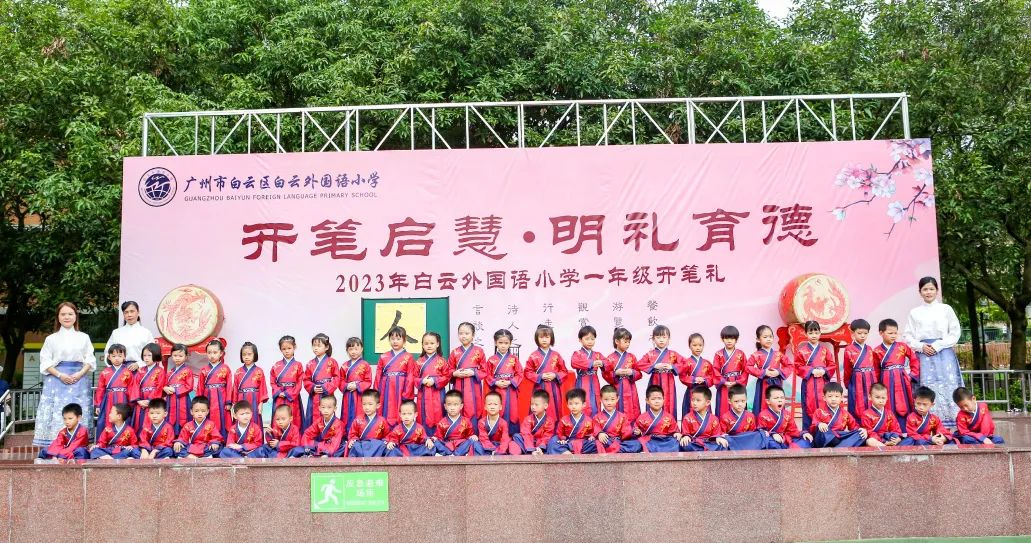 为了让一年级新生感受到入学是人生中的一件大事,是学习的开始,激励他们珍惜读书机会,勤奋学习,弘扬我国优良的传统文化,2023年9月13日上午,白云外国语小学在学校大操场隆重举行了“开笔启慧·明礼育德”一年级新生开笔礼。广东外语外贸大学教育合作与发展中心党委副书记、纪委书记贺静,我校全体校领导、中层干部、一年级师生和家长们欢聚一堂,共庆一年级“开笔礼”。