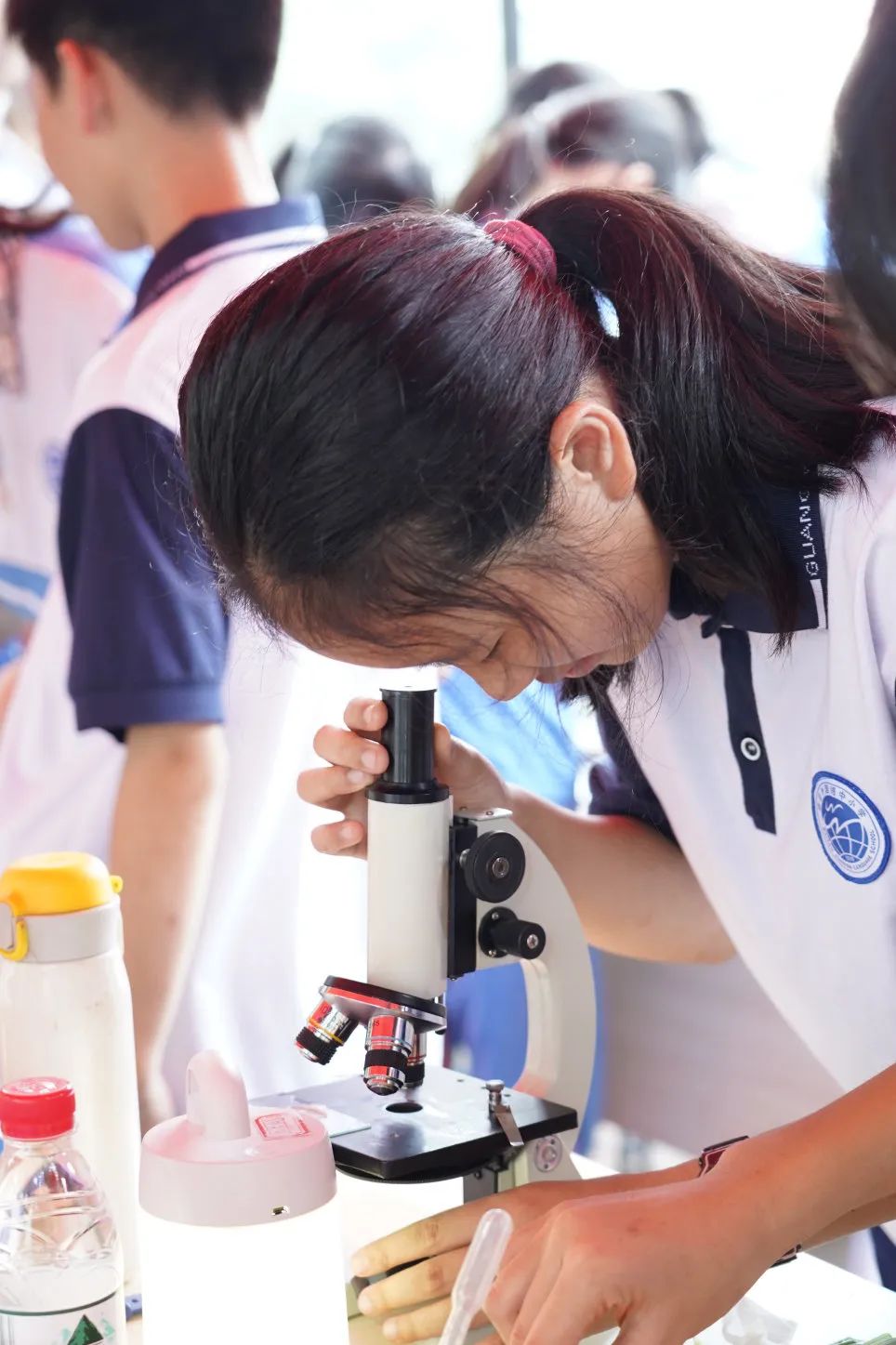 初一的同学们积极参与了机器人气球大战、显微镜操作技能比拼、“我是小电工”、“谁推动了塞子”、“物理大咖,挑战不可能”等科技项目,乐在其中,感受科技的魅力,现场反响热烈。