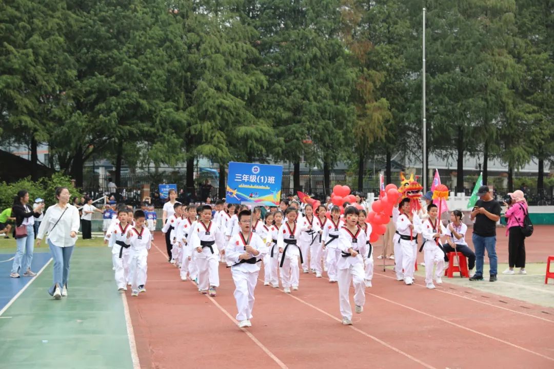 六年级方阵,他们用象征中国力量的觉醒雄狮、百变脸谱、古风诗词、鲜艳旗帜迎接校运会。青春在运动中勃发,团结在拼搏中彰显,我们期待少年们在赛场上谱写出他们的运动新篇章!