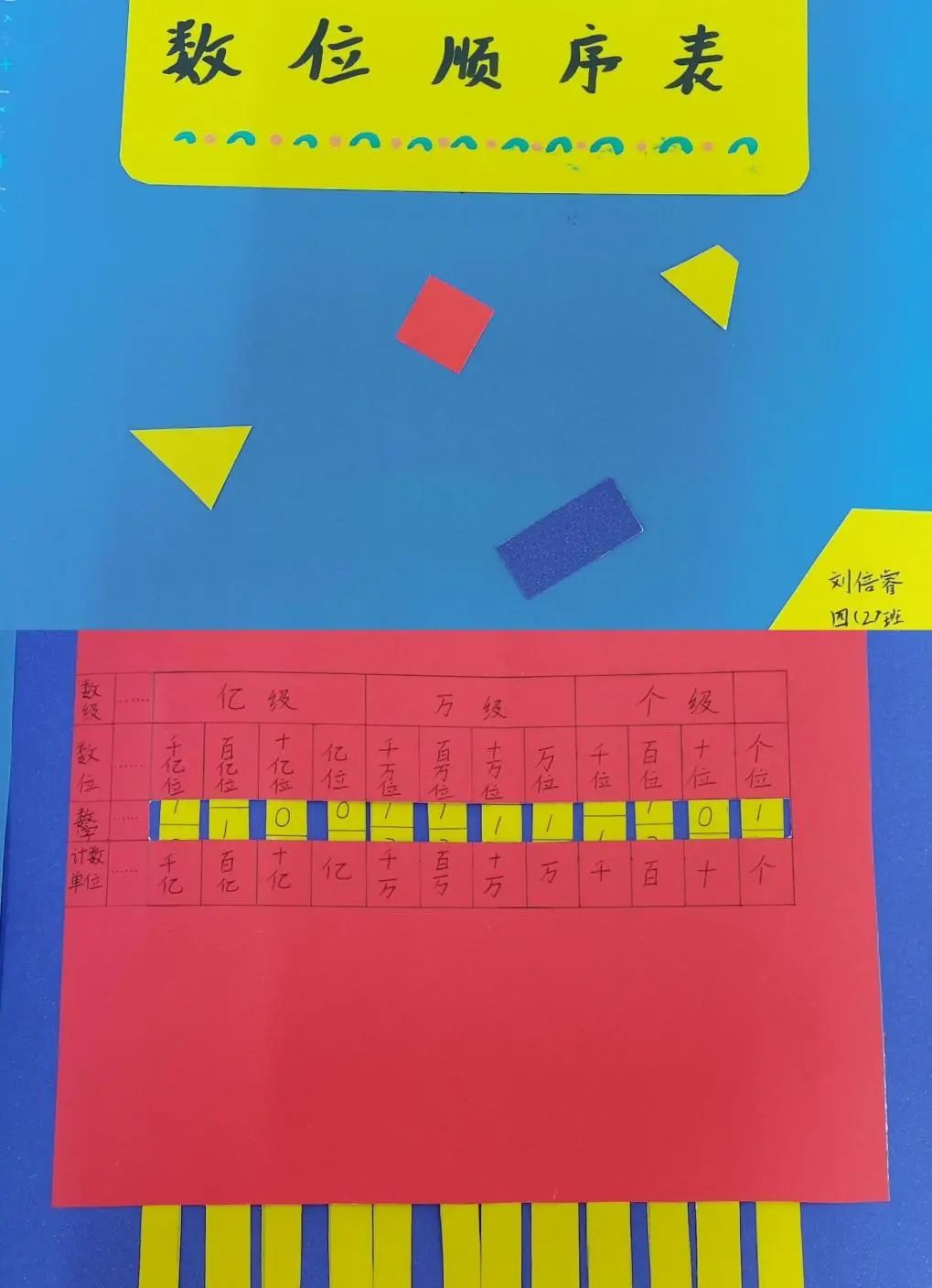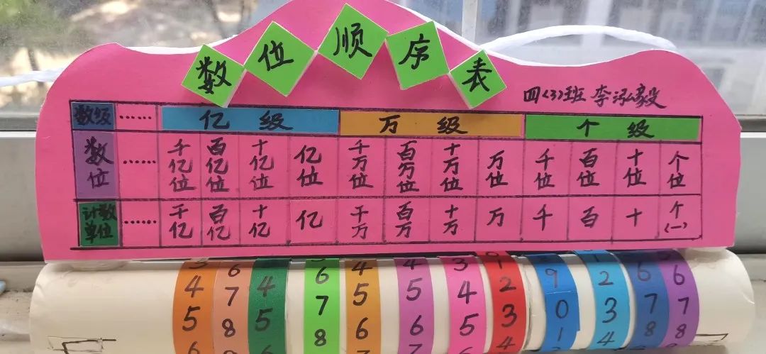 让数位顺序表“动”起来,四年级的同学们发挥他们的聪明才智,制作出很多可以“动”的数位顺序表。在制作过程中,不仅加深了对知识的理解,还巩固所学知识。