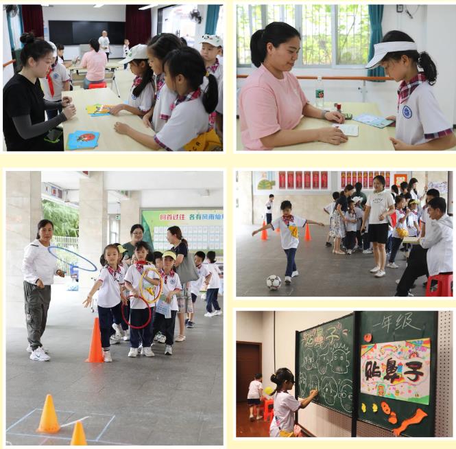 6月28日下午两点,游园活动在一、二年级各班课室及校内操场如火如荼地开展起来了。在家委的带领下,一、二年级各班学生分组有序前往各闯关区和体验区进行活动。游园闯关活动的每个模块均为独立区域,分别设立游戏区和等候区,每个区域由负责老师进行评价和管理工作,楼层管理员和义工家长负责协助维持纪律。