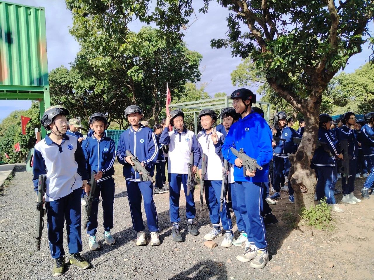 初一初二的研学分为轻武器射击、CS竞技对抗体验、劳动教育、非遗工艺、趣味拓展五个部分。同学们以沉浸式的体验、以饱满的热情参与到每一个项目,既增长了国防知识,又锻炼了劳动能力,还培养了爱国情感。