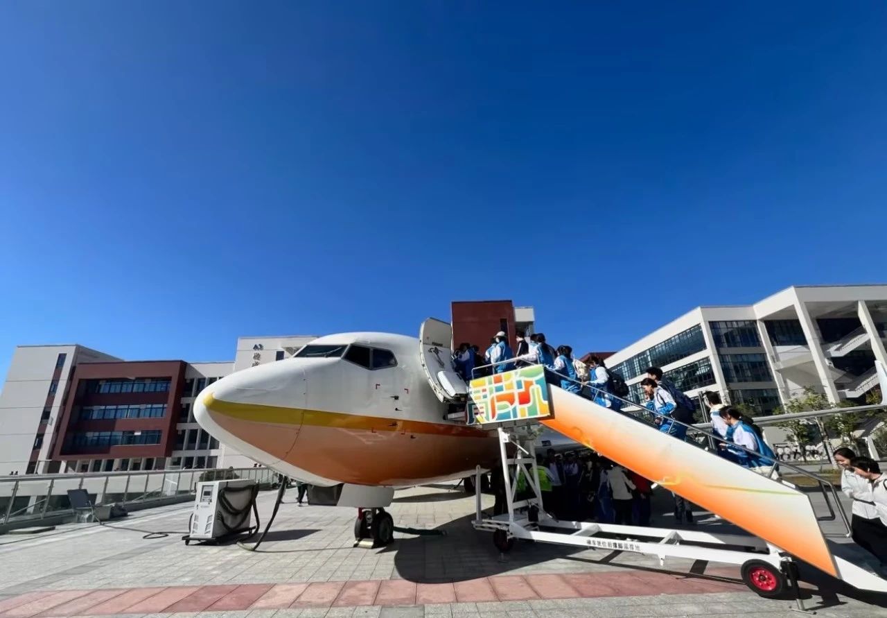 初三的同学们探访了技师学院的实践教学基地。通过参观交通装备系、智能制造系,师生见证了车联网技术的实际应用,了解了其在我国智慧交通领域的重要作用,同学们对智能制造有了直观的认识,更感受到了制造业的创新活力。沉浸式体验747飞机基地线路、智能汽车座舱一体化学习工作站与智慧交通一体化学习工作站,让师生对智能制造业、科技技能领域有了更深入的了解,激励学生努力学习,实现科技强国之路。