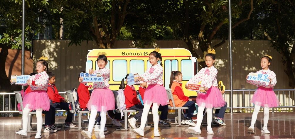 校车安全伴我行,上学之路保安宁!随后,三年级(5)班的同学带来了一场精彩的《文明乘坐校车》舞台剧表演。他们采用生动形象的表演,将生活中乘坐校车的情景搬到舞台上,把乘坐校车过程中的文明礼仪、安全规范等环节及注意事项进行了精彩的演绎,再配上创意改编的歌舞,让台下的师生们在欣赏表演的同时,进一步加深了对校车安全知识的理解和重视。