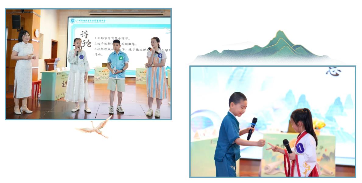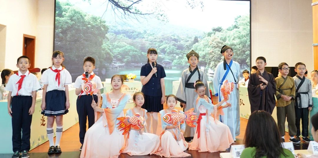 及至“图影悟诗”环节,一年级小画家的笔下,李白乘舟的飘逸、牧童归途的悠然,在选手们“锄禾日当午”的吟诵中跃然台上。