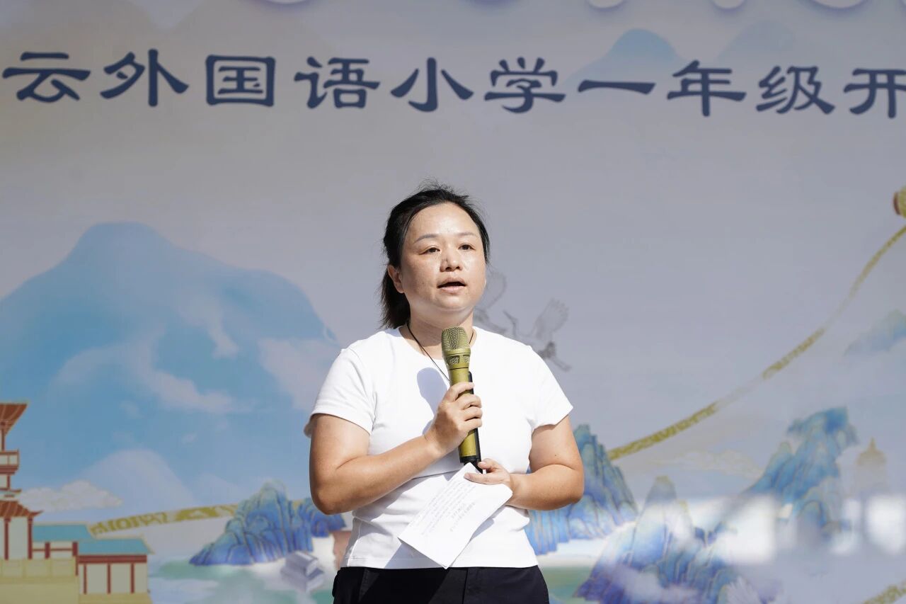 随后,黄哲昙副校长上台致辞,她向新生们致以热烈欢迎,鼓励孩子们以开笔礼为起点,在校园中勤学善思、明礼笃行,传承中华优秀传统文化,成长为有理想、有担当的新时代学子。