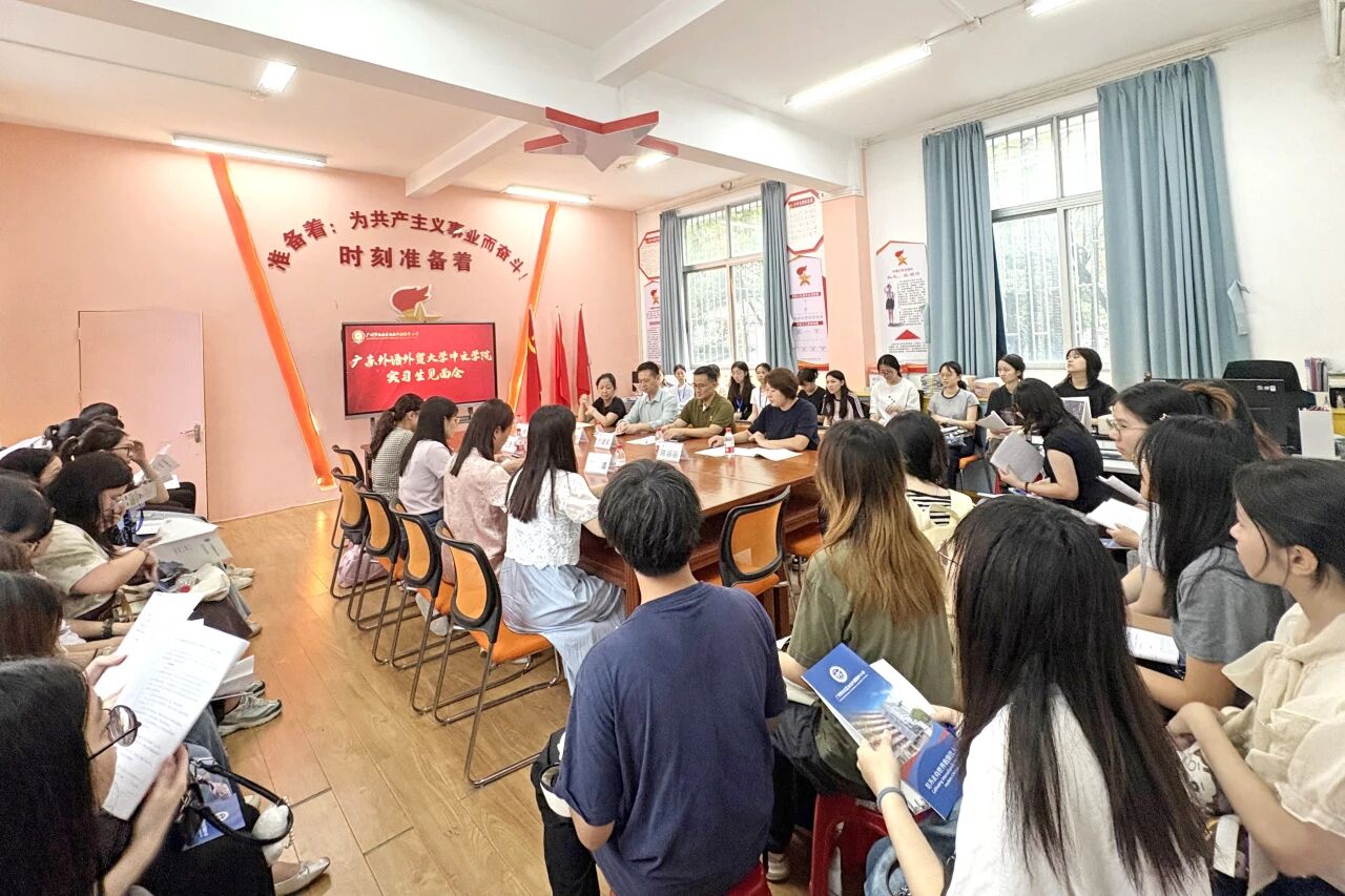 同心筑平台,实践育良才。凭借广东外语外贸大学多学院实习实践基地的深厚合作基础,我校于2025年9月8日在尚行楼大队部室顺利举办广东外语外贸大学中文学院实习生见面会。广东外语外贸大学王思齐老师带领36位中文学院实习生如约而来,我校党支部书记、校长方建军,党支部副书记朱传兵,小学课程教学中心主任唐龄以及中、小学语文科组长参加会议,向王老师及全体实习生表达了诚挚热烈的欢迎。