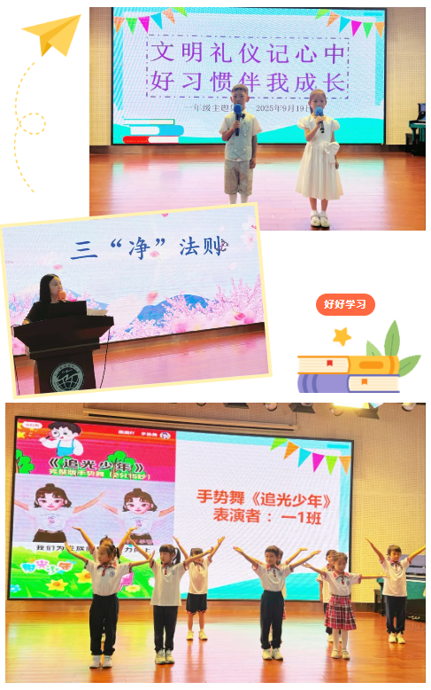 在二年级的集会上,学生们用多样的节目形式生动地展现了校园、家庭、社会礼仪之美,“文明小乘客”表彰环节更是点燃学子向优看齐的热情。这场集会以鲜活形式强化文明认知,推动雅言雅行融入日常,为新学期成长注入礼仪力量。
