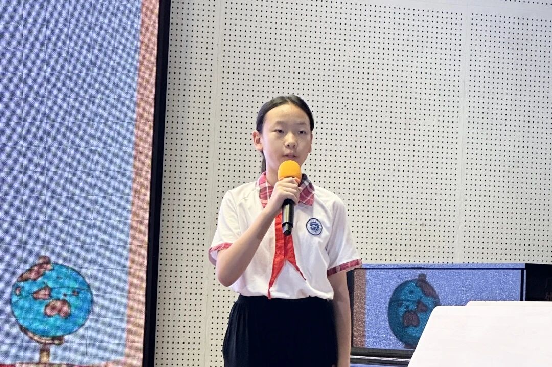 随后,六4班的王星予同学闪亮登场,为全年级带来了《小学生校园安全知识宣讲》,内容实用易懂,引人入胜。