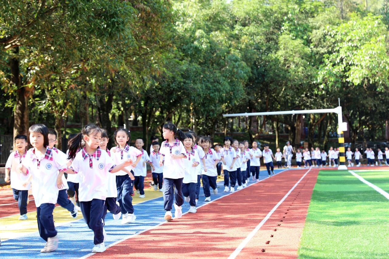 可以在操场上尽情奔跑。