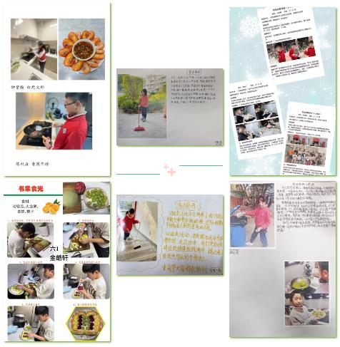 五至六年级学长以技能为基,让劳动承载责任与文化。食育烹饪任务中,创意餐食搭配精妙,主食、配菜与饮品相得益彰,水果拼盘造型别致,过程与成品影像完整呈现匠心;公益劳动拓展中,劳动技能科普手册干货满满,社区服务身影忙碌暖心,校园公益行动传递正能量,尽显小小少年担当;跨场景文化创新里,家庭低碳改造方案科学可行,传统劳动技能实践韵味悠长,实物作品与文字说明相映成趣,让劳动与文化、创新深度融合。