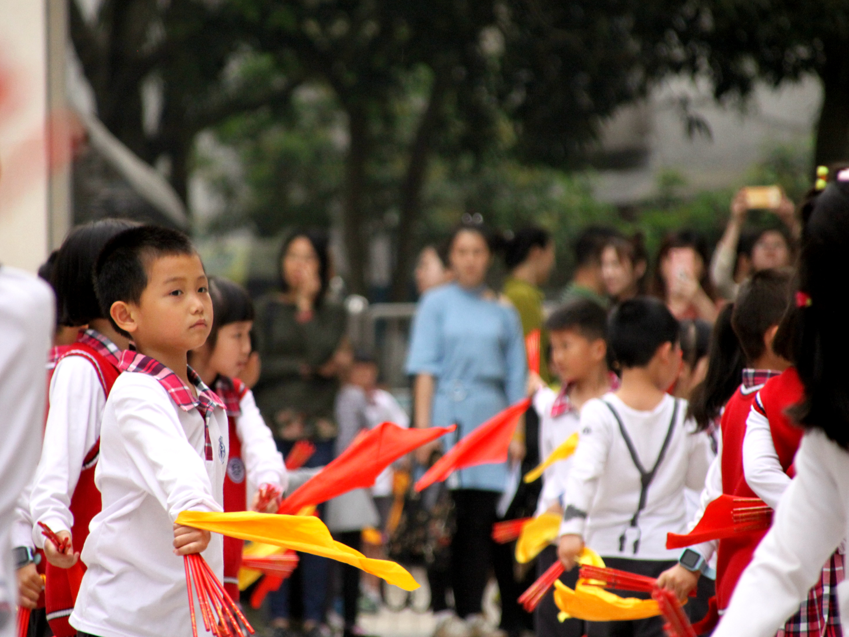 课后,家长们领着小朋友们观看特色大课间活动。师生们列队布满校园,他们挥舞手中的筷子整齐有序,清脆悦耳的筷子声回荡在整个校园,年级特色活动也让在场的小朋友们跃跃欲试。