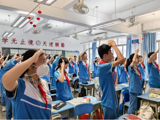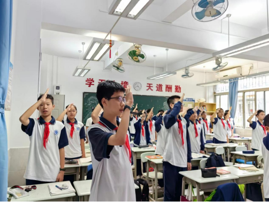 建设生态文明是关系人民福祉、关乎民族未来的长远大计。为贯彻党的二十大精神,动员广大青年学生“爱绿、植绿、护绿”,积极参加“红领巾林”建设,践行绿色低碳生活方式,以实际行动减少能源资源消耗和污染排放,守护好广东的绿水青山。白云外国语中学5月20日早上举行了主题为“绿美广东,青年先行”的升旗仪式。