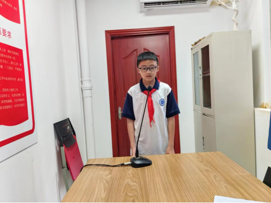接着,初一(4)唐麟喆同学宣讲“守护绿美白云,创造绿美未来”。作为一名“绿意科普,筑梦白云”红领巾讲解员,唐麟喆同学给大家讲解了白云山的青山绿水、繁茂植被以及在森林中奔跑、飞行的各种小野生动物,例如:小松鼠、孔雀、画眉鸟、琵鹭等等。他还倡议同学们增强环保意识,践行绿色生活,从小事做起,从小做起,用双手和智慧守护白云山的绿水青山。