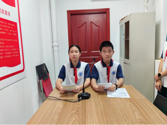 本周升旗礼由初一(4)主持,因天气下雨,升旗礼在室内举行。主持人是来自初一(4)班的邹恩佑、陈泳好。
