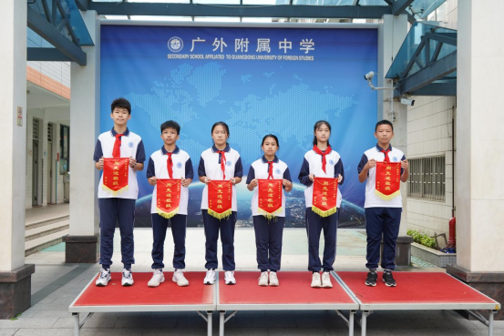 获得上周流动红旗的班级是:初一(1)、(2)、(3)、(4)班;初 二(2)、(3)班。