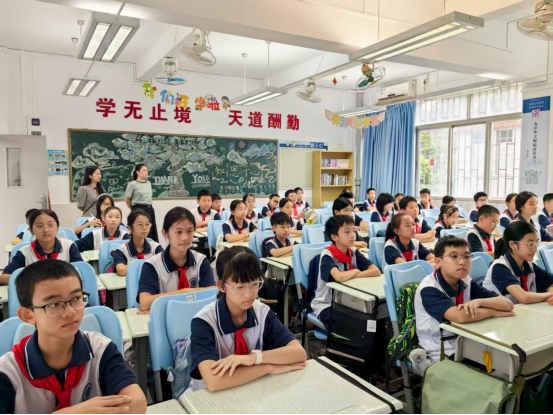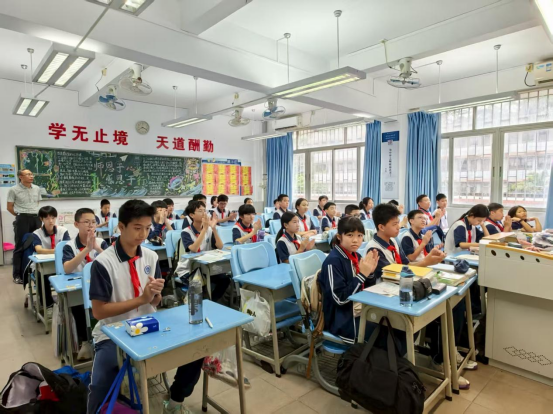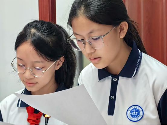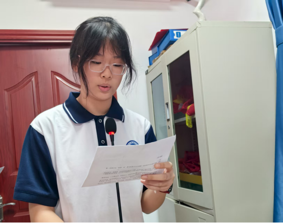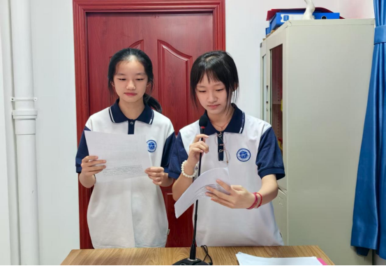 同学们的朗诵声情并茂,教室里的同学听得非常认真。学生代表周颖硕、陈秋亦也带来歌曲《你从光中走来》,她们优美动听的清唱赢得同学们阵阵掌声。