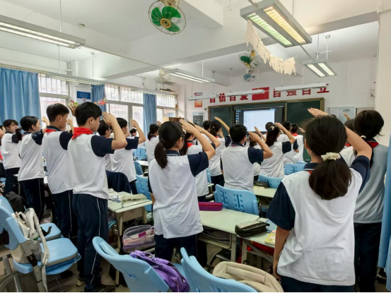 首先,在室内举行庄严的升旗仪式,同学们以饱满的热情唱响国歌,向国旗敬礼。