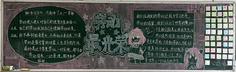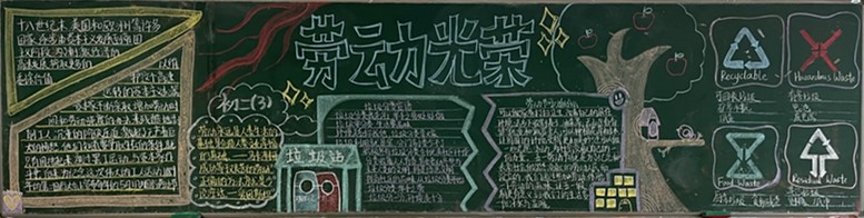 为了全面推进新时代中学生劳动教育,深入开展中学生劳动实践体验活动。广州市白云区白云外国语中学组织初一、二年级开展“劳动最光荣”主题黑版报展示评选活动。