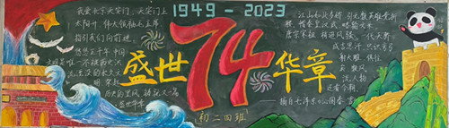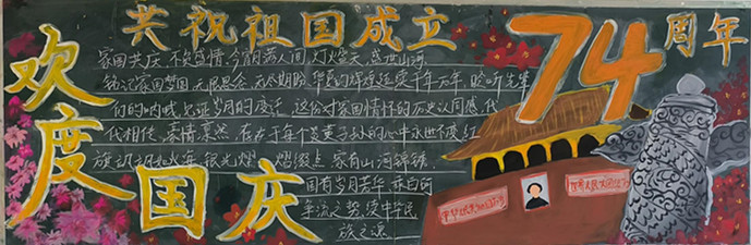 各班师生积极行动,利用课余时间,精心设计的黑板报形式多样、色彩鲜艳、主题鲜明。师生用自己的画笔表达着对祖国浓浓的爱,为这个举国欢庆的日子送上了一份美丽的画卷!