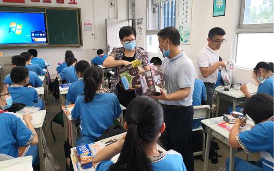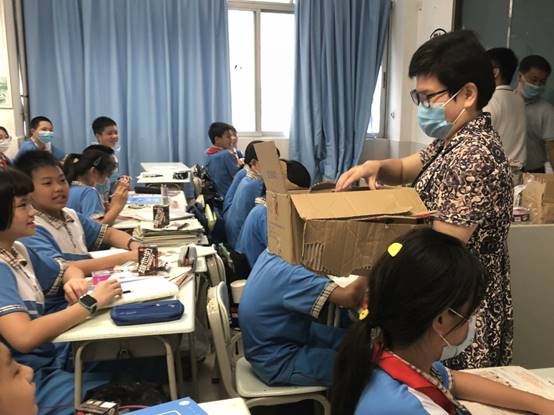 学校领导为学生派发“六一”礼物