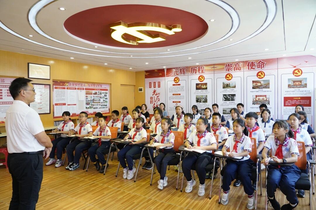 2025 年 9 月 18 日,在这个承载着特殊历史记忆的日子里,白云外国语中小学党支部书记方建军同志以“血色丰碑与和平薪火——新时代青少年的使命与担当”为主题,为少先队员及团员代表讲授了一堂深刻的专题党课。党课以详实的历史资料、鲜活的英雄事迹和鲜明的时代导向,引导学生们在回望历史中汲取力量,在展望未来中勇担使命。