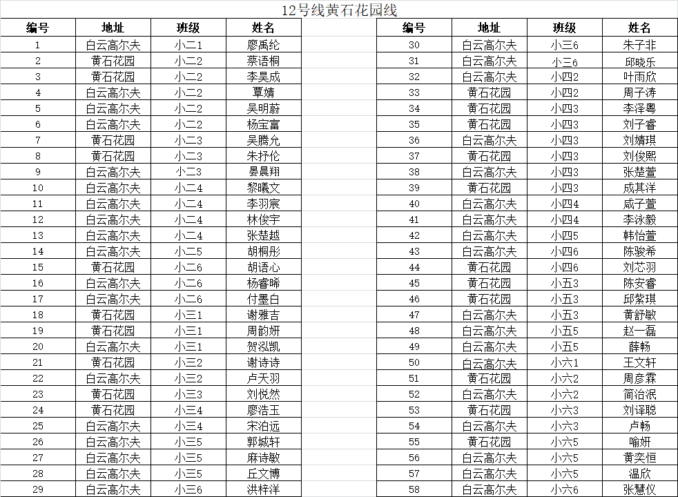您好,根据2019年5月31日的《关于报名乘坐2019年下半年校车的通知》,报名于6月7日17:00结束。经过清点、统计和核对(2019年新生不在统计范围),12号线黄石花园线已超过校车规定乘坐人数53人(名单见下表),学校拟于6月14日15:00在报告厅现场抽签确定乘坐校车同学名单,敬请报名乘坐12号线的家长届时前来参加。其他已报名乘坐校车的学生均可以乘坐校车。