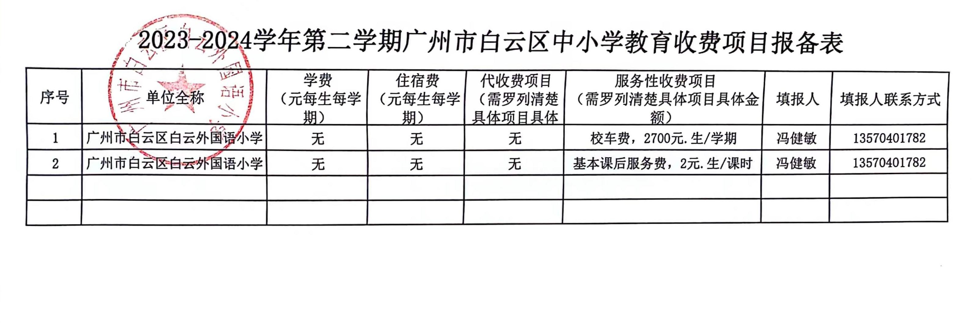 附件:广州市白云区白云外国语小学教育收费项目报备表