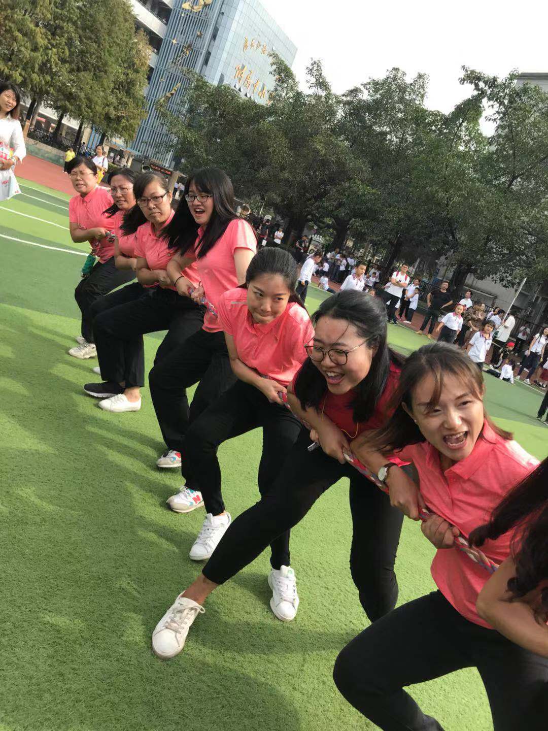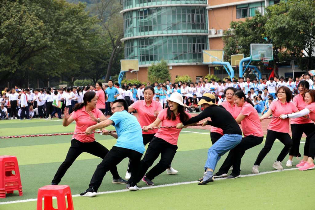拔河比赛虽然在绳子过线的那一瞬间就被决定,但在比赛中收获了团队中每个人的不懈努力。心往一处想,劲往一处使,尽自己的责任,在团队中才能很好完成同舟共济的比赛。这次教职工趣味运动会与学生运动会一起同场进行,加强了师生间的了解,展示了教职工们别样的风采和团结协作的精神,充分发挥了教师的榜样作用,为本次运动会增添了不一样的精彩。