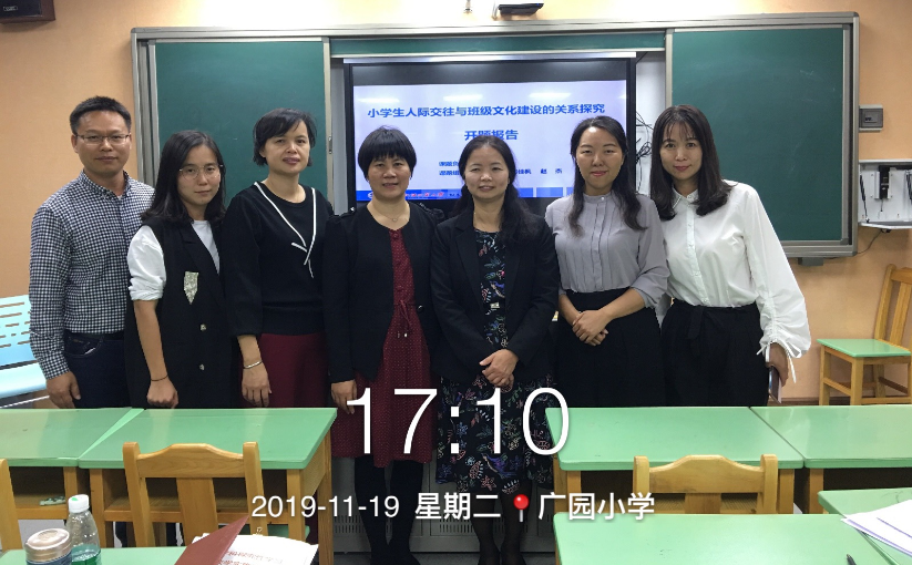 在广园小学现场,杨洁老师对课题《单元整体教学的探究与实践》阐述了开题报告。针对本课题,她提出了创设“七课型”教学模式和建立单元整体教学“评价体系”的设想,同时,就如何落实的具体步骤进行了详细介绍。梁海文老师就课题《小学生人际交往与班级文化建设的关系研究》做了开题报告。他重点介绍了该课题的研究背景、目标意义、研究内容、研究方法、实施过程、预期效果以及研究保障。