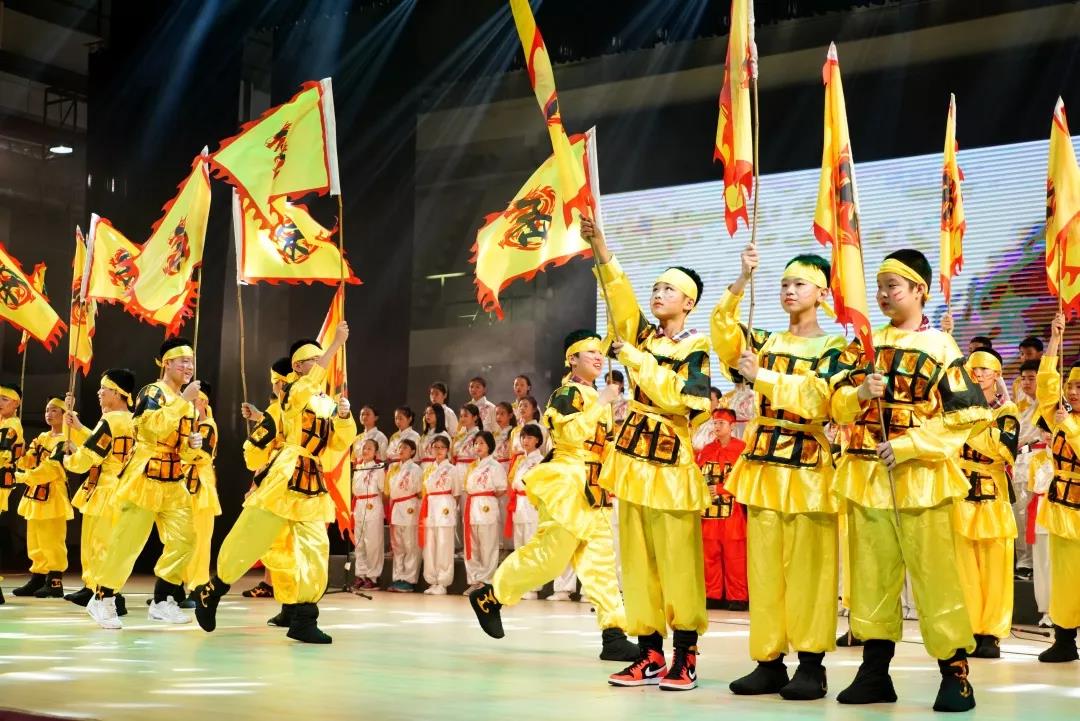 三1、三5班《满江红》身着黄金战甲的学生演绎岳飞精忠报国,霸气豪迈,深藏身与名,一曲高歌,热血沸腾。
