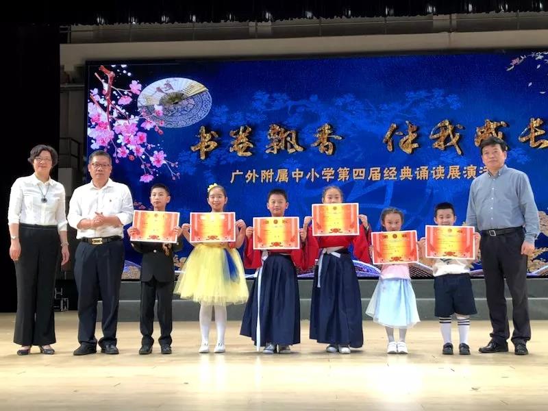 本网讯 享读书快乐,品诗词美韵。4月23日,我校 “书卷飘香,伴我成长”第四届经典诵读展演在广外云山会堂隆重举行。近2000名附校学子品读优美诗词,领略国学经典,通过吟、诵、唱、舞等活泼新颖,特色鲜明,不拘一格的表演,诠释了国学经典作品的内涵。