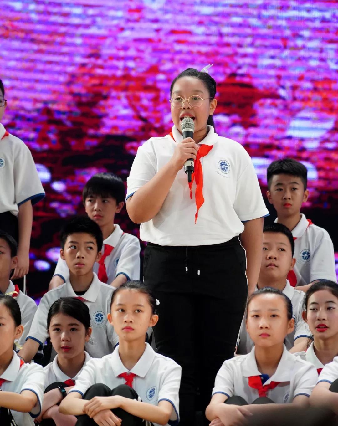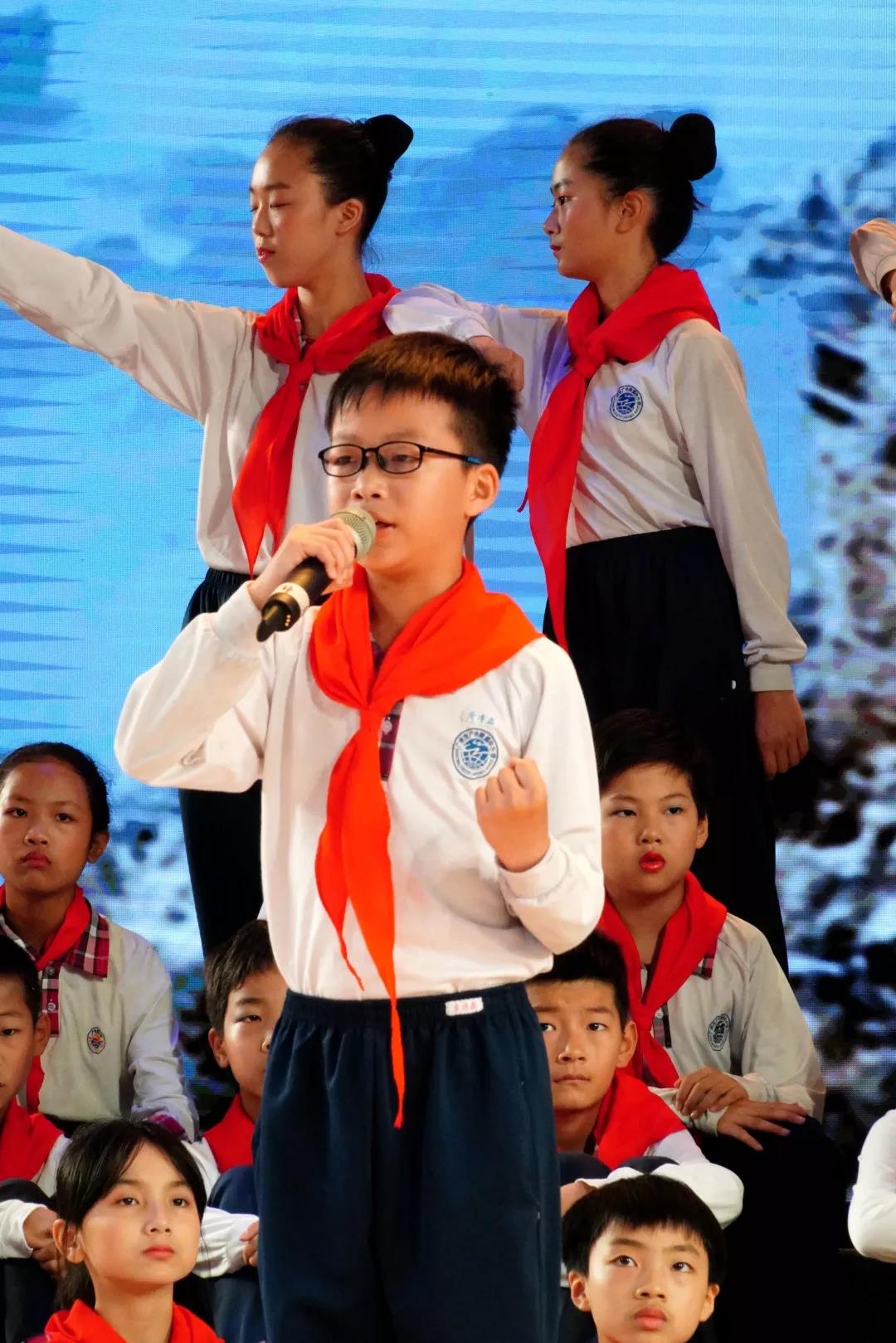 六3班的《少年中国说》唱响了中国少年的风采,全场齐诵让人热血沸腾,把演出推向了高潮。
