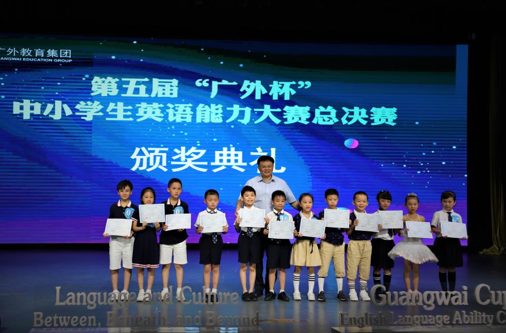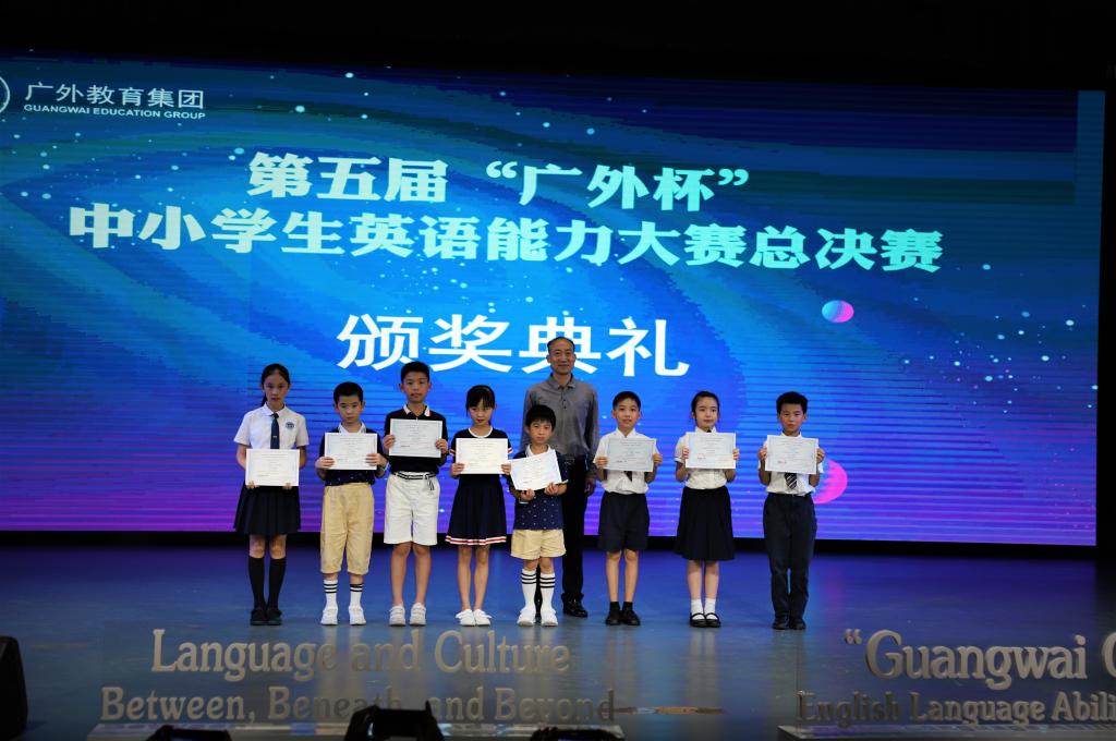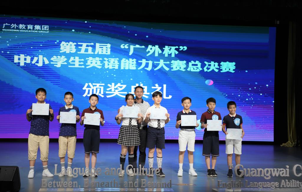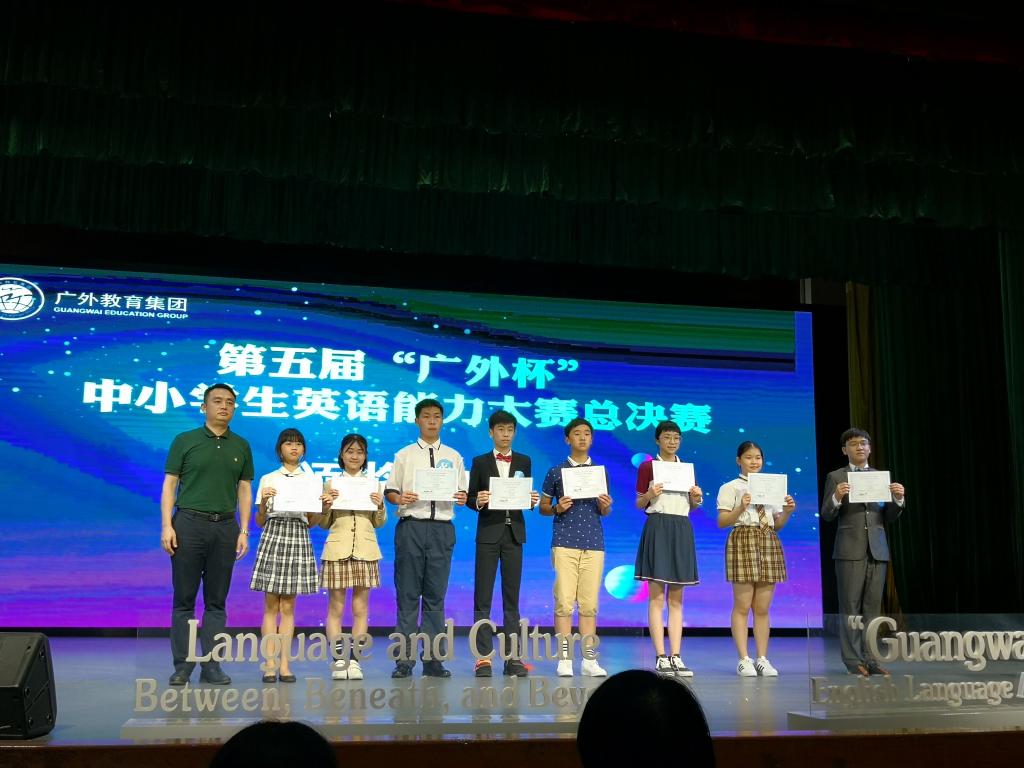 本网讯 5月28日,第五届“广外杯”中小学生英语能力大赛”(简称“广外杯”)在广东外语外贸大学北校区第六教学楼报告厅隆重举行。广外教育集团旗下11所中小学的88名选手参加了比赛,最后我校一至八年级9名在学校的海选中脱颖而出的选手,一二年级组的刘梓乐、邓乔之、李子墨,三四年级组的张宸硕、柳君阳,五六年级组的葛书翰、潘一川,七八年级组的宫润宇代表我校进入到总决赛中。