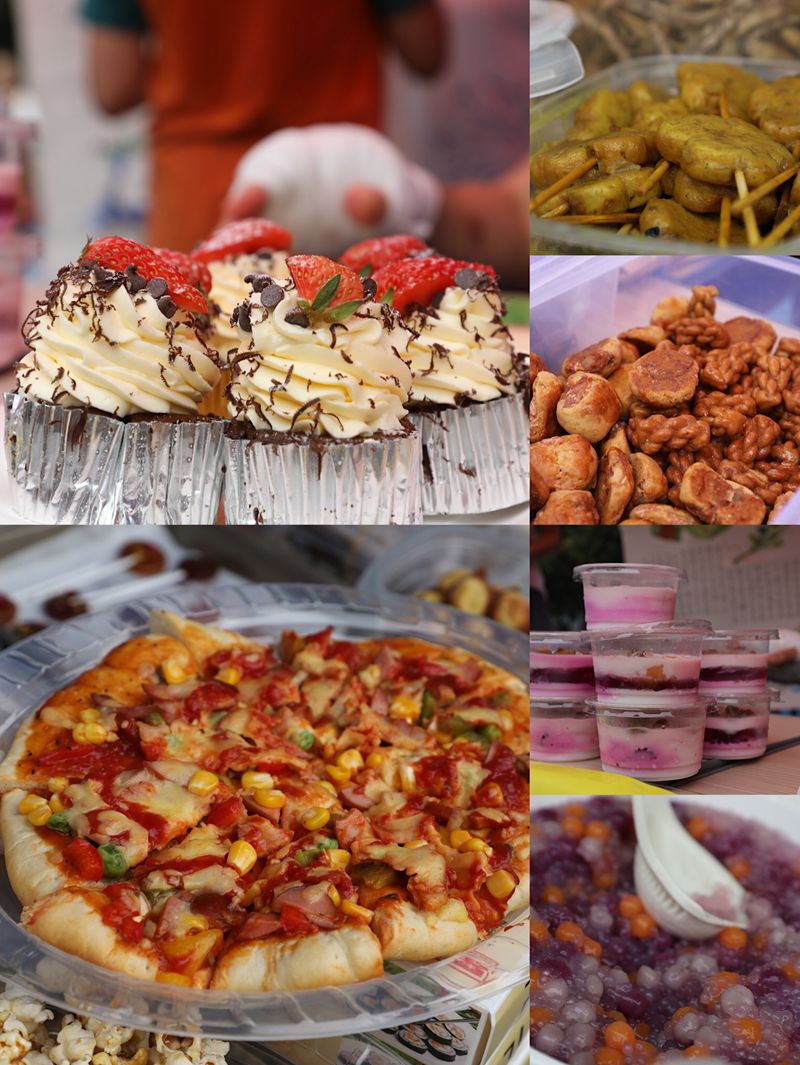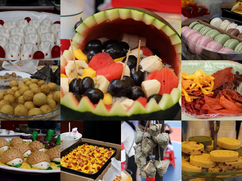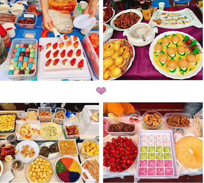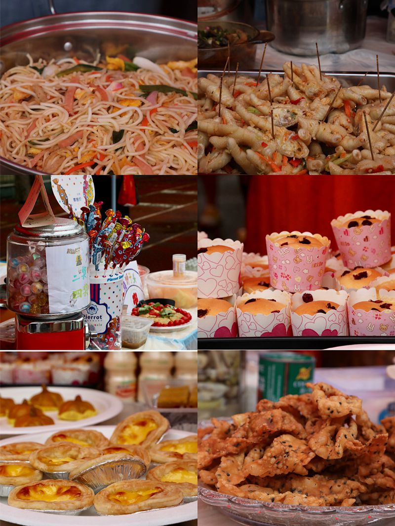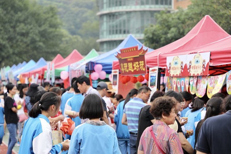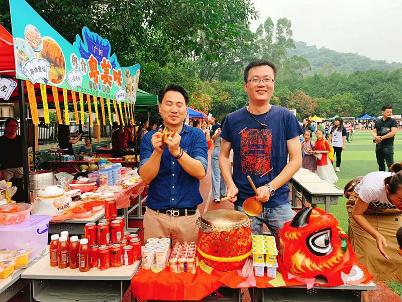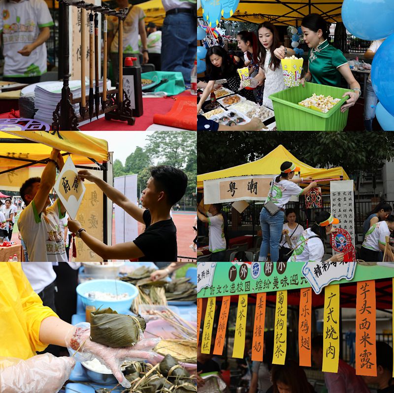 9:40,广府文化展暨美食节开始了,大操场上各班家长早已为孩子们布置好了美食大本营。放眼望去,五颜六色的帐篷好似一道色彩缤纷的虹。孩子们兴奋地拿出自己和家长精心准备、亲手制作的美食,热情邀请经过的大朋友小朋友们来品尝,整个操场美食飘香。与此同时,伴随着粤语童谣欢唱,鸡公揽走街串巷,身着精美旗袍的美女妈妈们为大家奉上新沏的茶,各种粤式点心,糖水,让人眼花缭乱,目不暇接。孩子们尽情地吃,尽兴地玩,同时也在广府文化的氛围里浸染着,校园沉浸在一片欢乐的海洋中。
