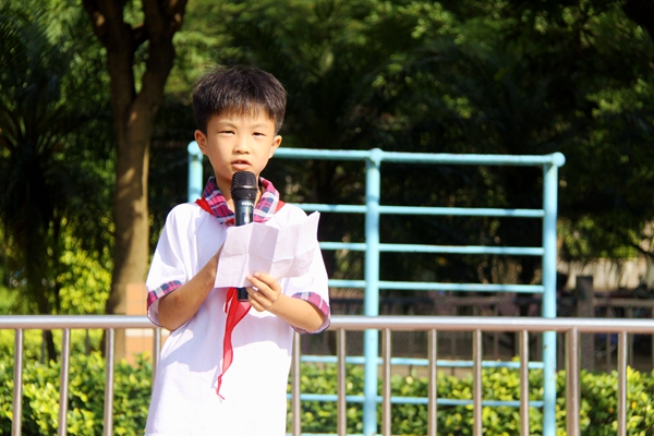 是日8点20分,全校小学生齐聚操场,在这个快乐日子里,我校少先队组织光荣迎来140名新队员的加入。高年级队员们为新队员佩戴上了鲜艳的红领巾,全体新入队的同学在少先队大队长的带领下,在庄严的队旗下,高高地举起右手大声宣誓,时刻准备着为共产主义事业而奋斗。