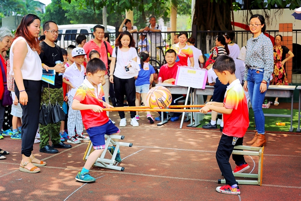 游戏你最红,快乐我做主游园活动游戏种类、形式多样,1000多名小学生和部分家长在快乐中玩游戏,在游戏中收获快乐。水果蹲、吸管运输、气象预报、打地鼠、绕口令、蒙眼击球、你比我猜等互动游戏,孩子们三个一群五个一组,纷纷拉上小伙伴们参与到趣味游戏中,笑声、喧闹声充满整个校园;扔、接球、两人三足接力赛、运西瓜、吸管运输等亲子游戏,孩子们在父母的带领下,仿佛展翅的天使,越玩越开心,而父母时不时流露出的宠爱的眼神,也让这个节日倍感温馨。通过这些丰富多彩的游戏环节,每人可赢得不同数量的“礼品兑换券”以换取自己想要的礼品,一小朋友换取奖品后高兴的说“感觉像过年一样”。