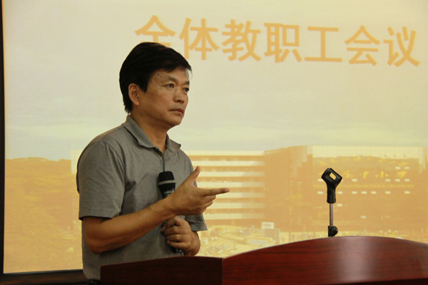 随后,陈又新逐一介绍新入职的12名教师,并对他们表示热烈欢迎。吴玉爱校长向全体教职员工解读了《求实创新抓质量 再上台阶出品牌》的新学年学校工作思路。在全校教职工的共同努力下,学校经过近两年的努力,在教育、教学、管理等方面不断创新,基本实现了既定目标。本年度是学校再上台阶、出品牌的关键之年,本年度的各项工作必须紧紧围绕这个目标展开。吴玉爱校长用“做人”“活动”“质量”“特色”“管理”“专业化”“文化”等七个关键词,布置新学年的工作要点,为我们本学年及本学期的各项工作指明了方向。