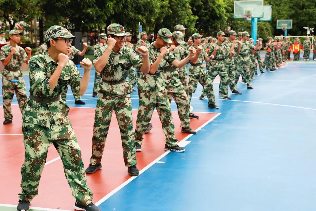 刚结束军训的初一、初二学生给师生们展示了军训成果——擒敌拳,同学们身着迷彩服,个个精神抖擞,出拳“快、狠、准、稳”,展现出附中学子健康乐观、积极向上的风貌。