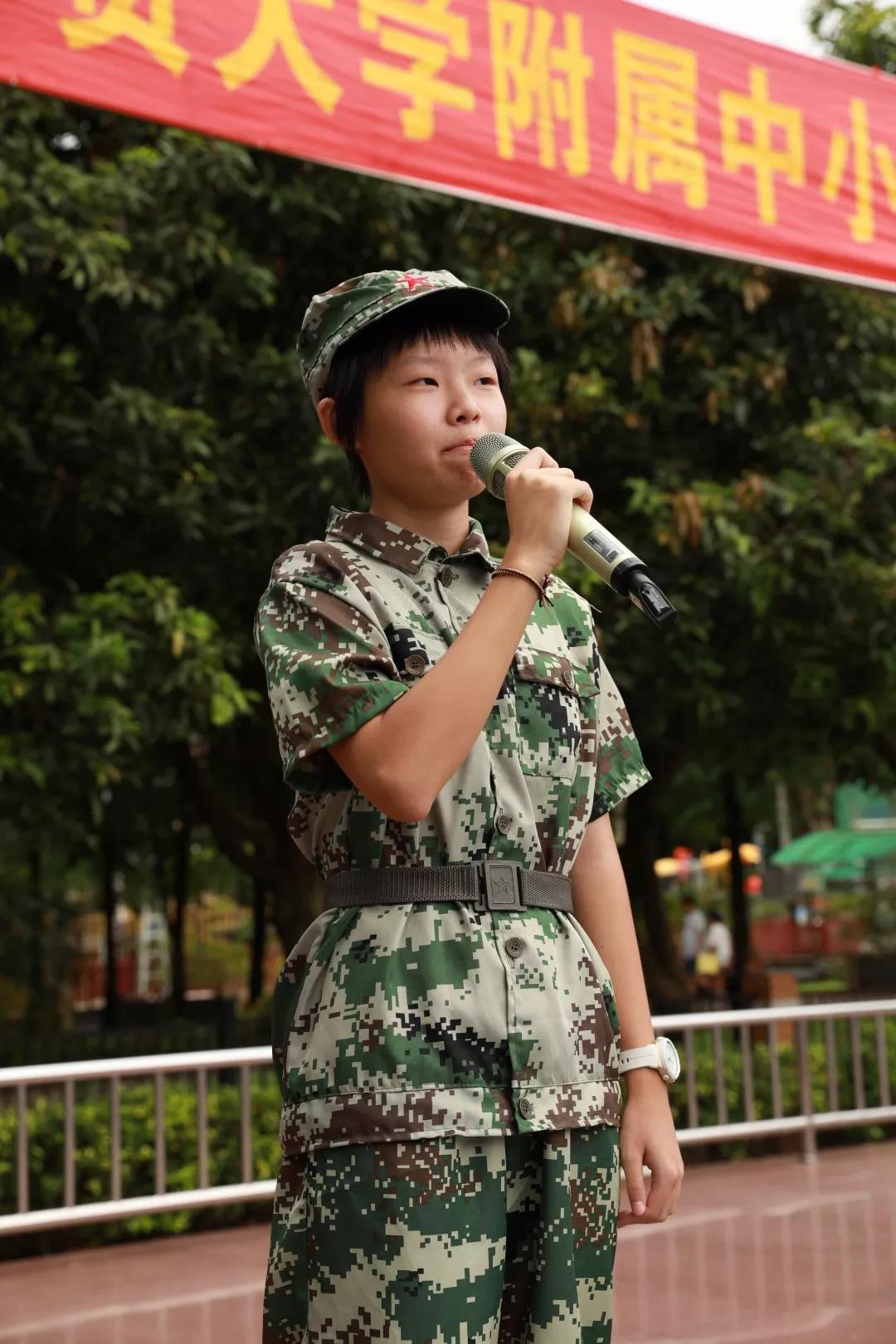 初二3班胡培诗同学作为学生代表发言,她分享了军训中的苦与乐,呼吁同学们做好新学期的规划,用勤奋、踏实的态度努力学习,用优异的成绩报效祖国。