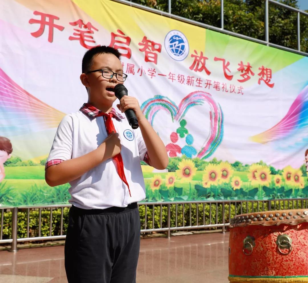 六年级学生代表程嘉礼带领新同学齐诵入学宣言,表达自己努力学好文化、学会分享、尊敬师长、团结同学、感恩父母、发奋读书的决心。