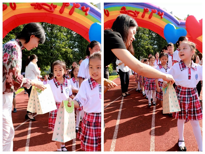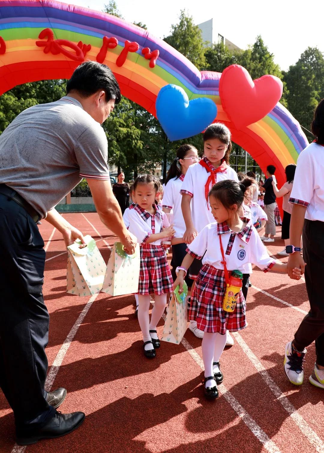 学校领导为每位新同学派发了一份精心准备的“爱心大礼包”——一根跳绳,一枚书签,一颗棒棒糖。希望同学们坚持锻炼身体;以书为友,养成良好的阅读习惯;努力做最棒的自己。
