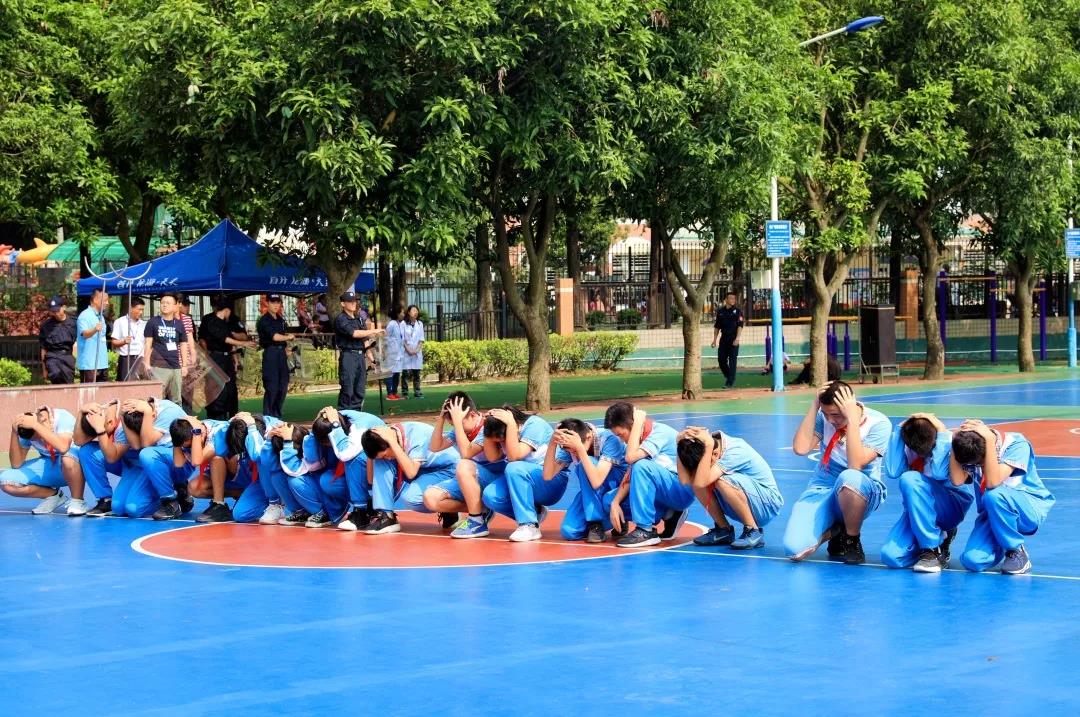 吴玉爱校长在总结发言上他表示,应急逃生关乎每位师生的生命,关乎每个家庭的幸福安宁,关乎学校的稳定发展。今天全校师生以较快的速度,良好的秩序,按照预定的疏散路线迅速、有序地从教室、办公室撤离到指定区域,增强了应急避险的自救能力。他强调,学校将对系列演习活动形成长效机制,进一步加强师生面对突发灾害、暴恐等事件的防范意识,提高自护自救及有效逃生避险的能力,最大限度地减少因突发灾害、暴恐等事件对师生造成的人员伤害,确保学校内部的安全和师生的人身安全。他同时代表学校向广东警盾教官团给予本次演练活动的大力支持表示诚挚的谢意。