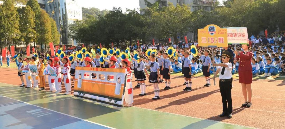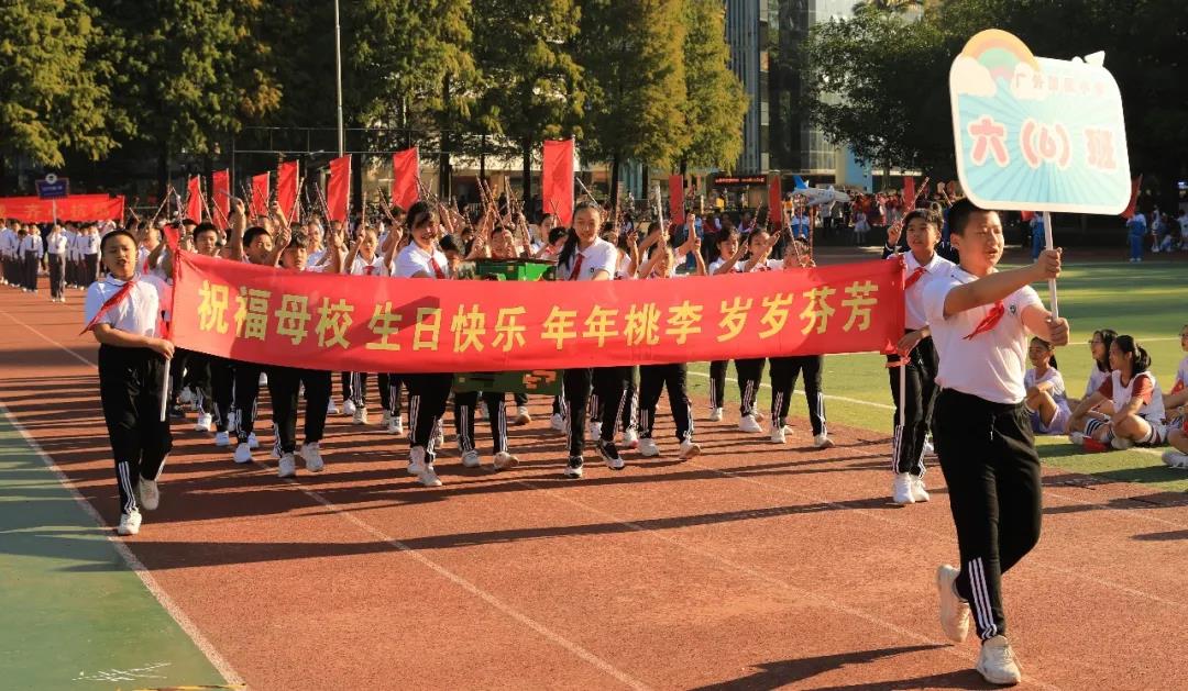 四年级组学生摆出“GWFX50”队形祝福母校50周年生日快乐,一一展示项目进课堂的体育项目,孩子们洋溢的笑脸是附小“轻负荷,高质量”理念最好的诠释。