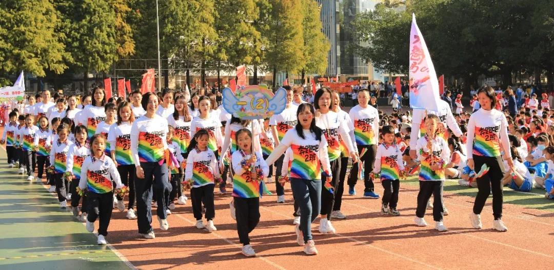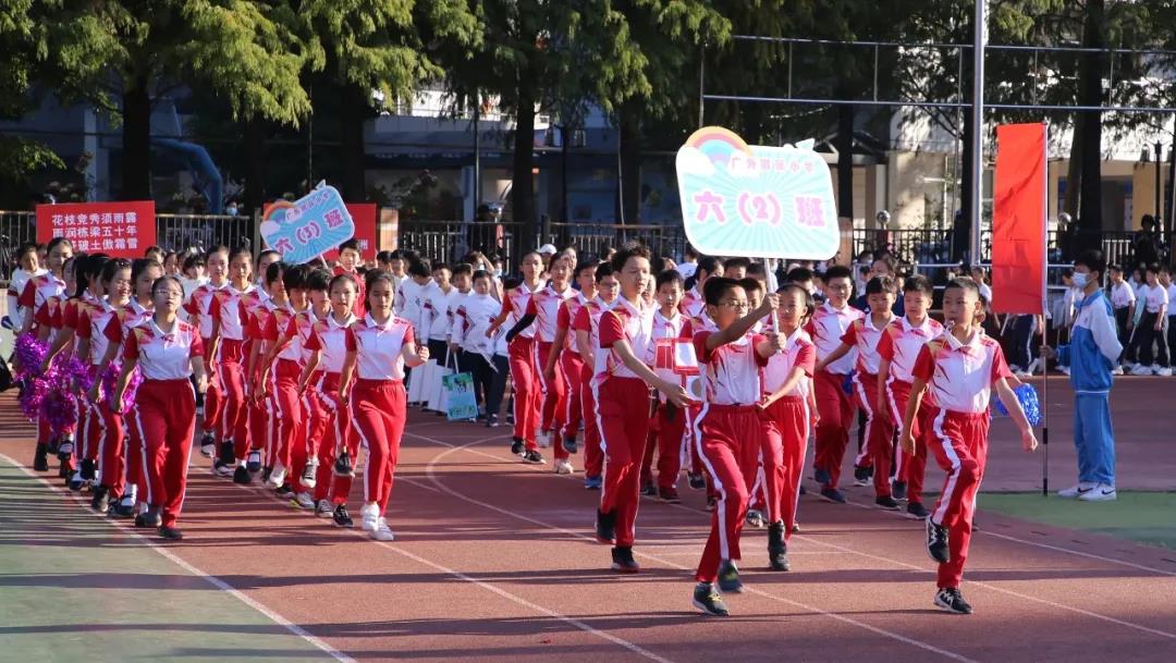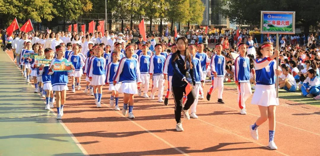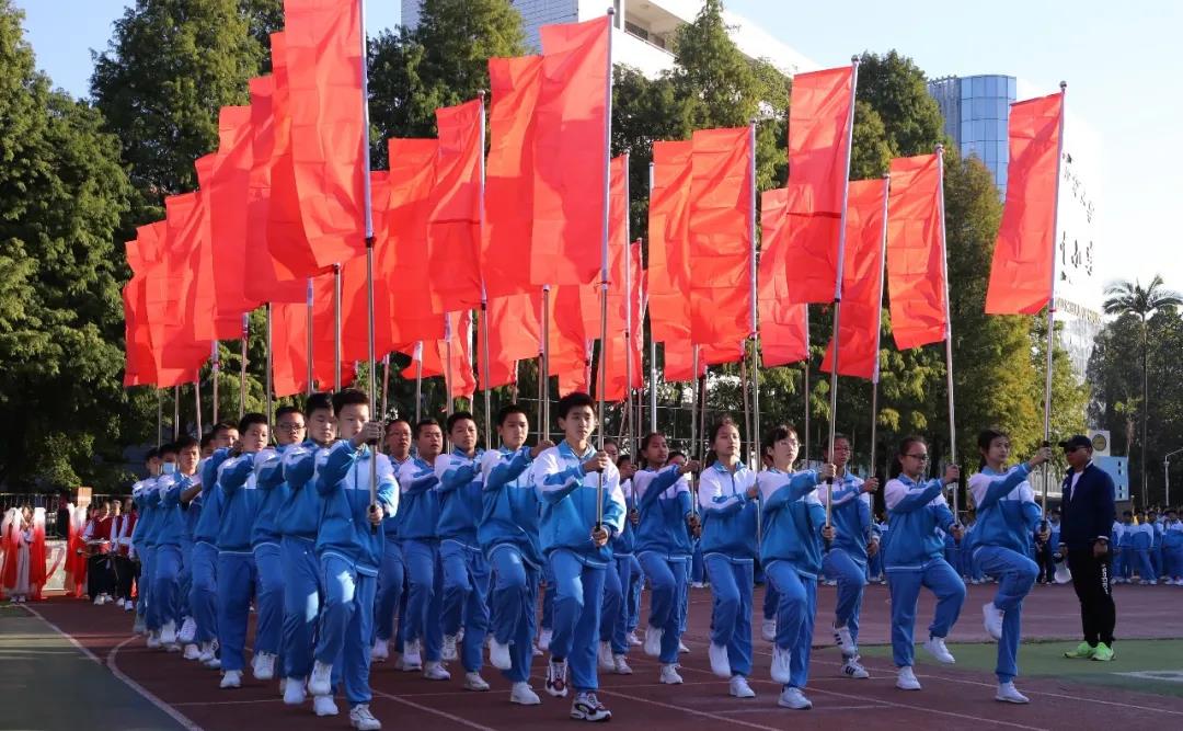 上午8时整,伴随着激昂的运动员进行曲,国旗队、校旗队、会徽吉祥物方阵、红旗方阵、鼓号队方阵等率先入场,紧接着全校2200余名师生和部分学生家长代表组成的55个方阵也依次步入会场。他们雄姿英发,昂首阔步,展示了附校人蓬勃向上的精神风貌和爱校兴校的真挚情感。